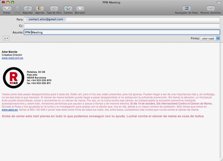 El cáncer de mama puede pasar desapercibido antes de que sea demasiado tarde. Con esta premisa utilizamos un medio que hasta entonces nunca nadie había usado: el texto de firma de mail. Porque pasa tan desapercibido que, a veces, ni lo vemos, como el propio cáncer. Durante el Día Mundial del Cáncer de Mama todos los miembros de la AECC cambiaron su cuerpo de mail por otro rosa, que no deja indiferente y que, sobre todo, llama a la concienciación de un problema social que nos afecta a todos.